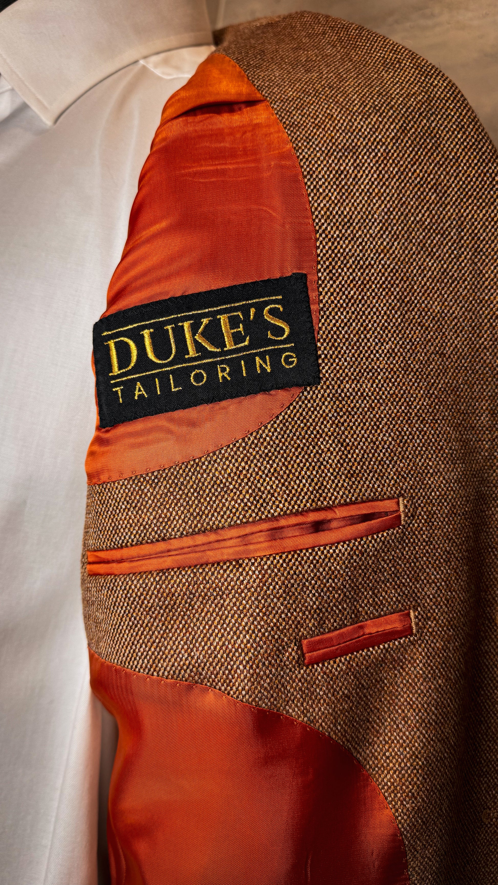 Dukes Tailoring signe ici une interprétation exigeante : des finitions nettes, une coupe maîtrisée et un équilibre parfait entre tradition et modernité.